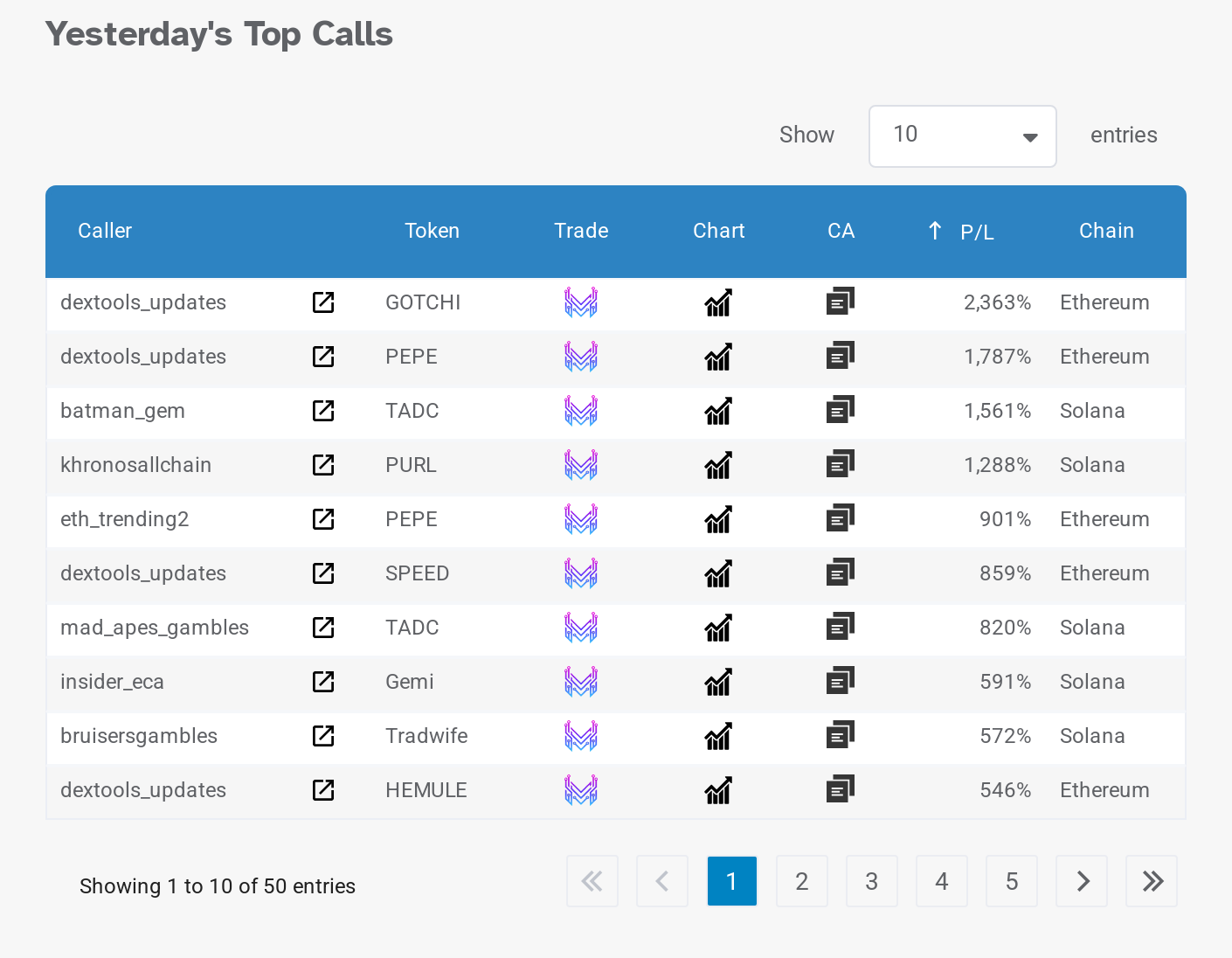 Chart | TTF | $ETH5000 TG | Caller Stats