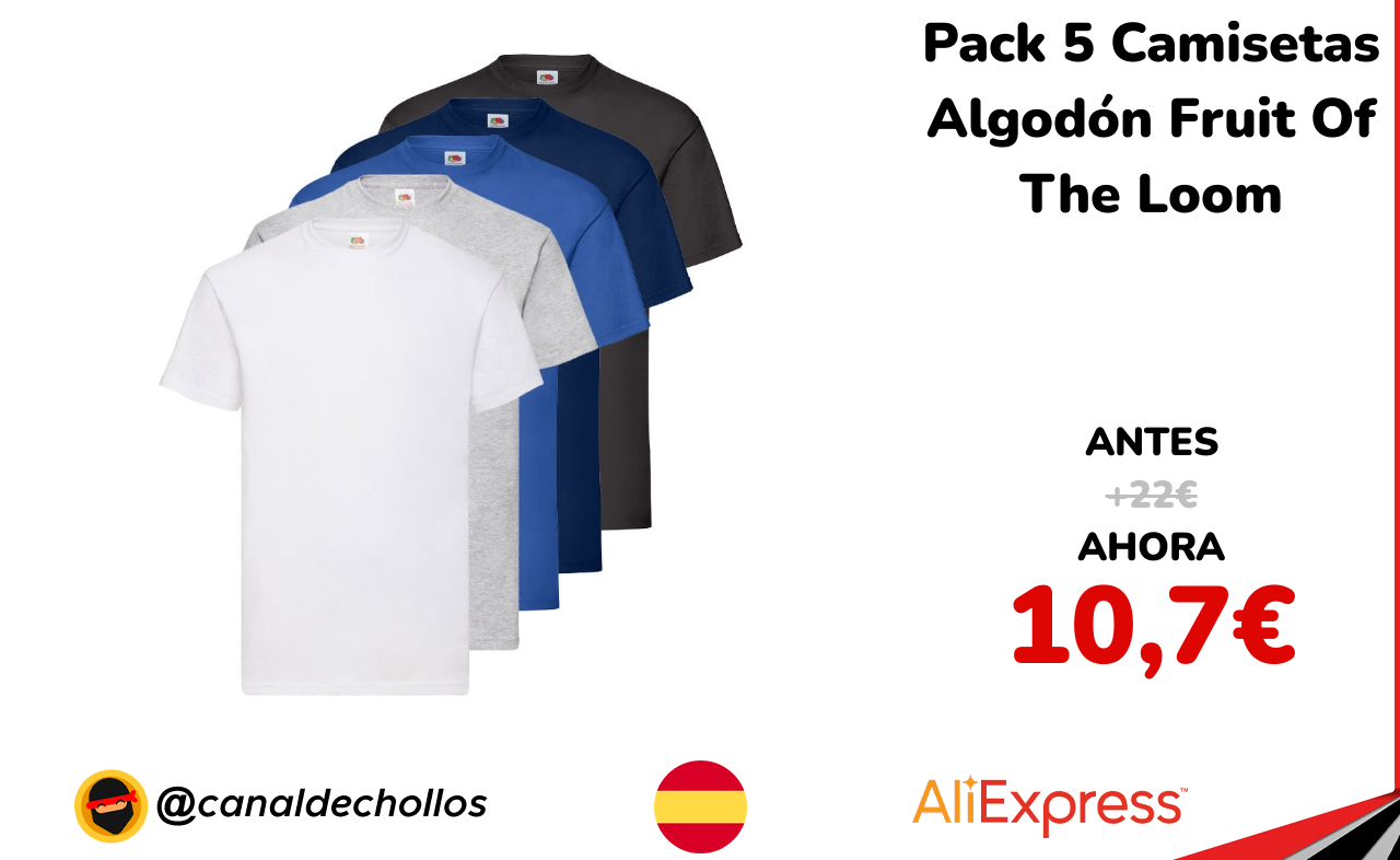 🔹 Pack 5 Camisetas Algodón Fruit Of The Loom solo 10,7€ ❗️💥 (PVP: +22€)