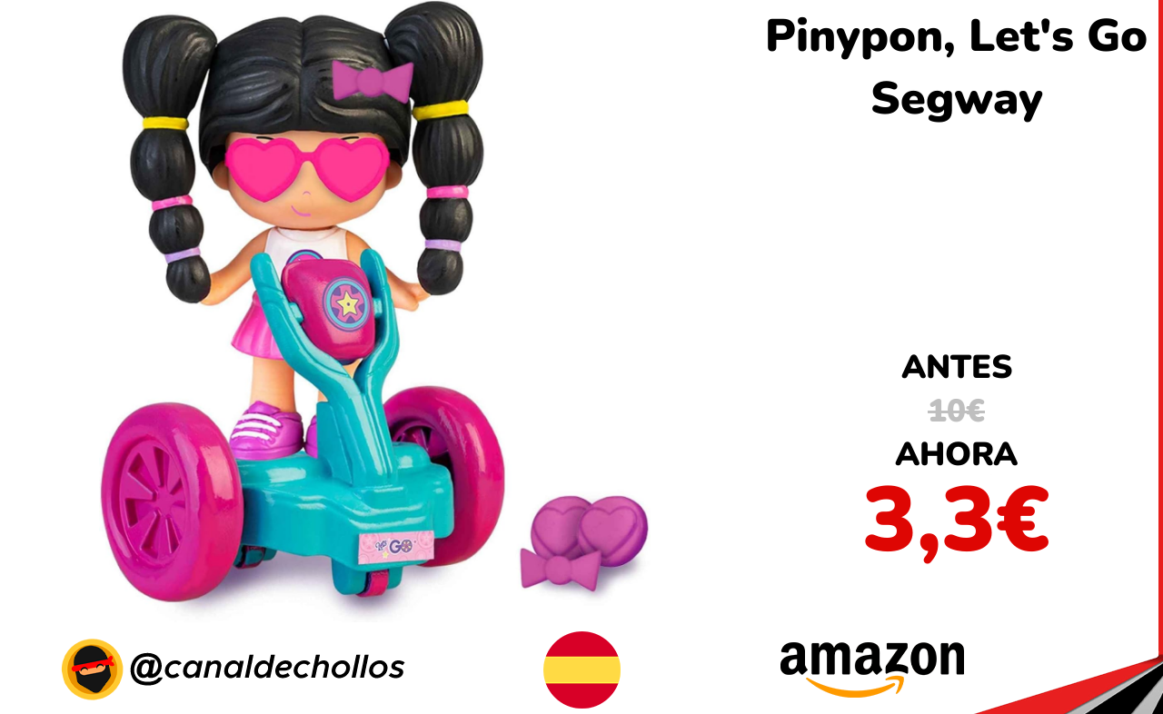 ✨ Precio chollito para este set de juguete Pinypon Let's Go Segway. Incluye una mini figura Pop&Swap con decoraciones flúor y dos accesorios a juego. Ideal como regalo para los peques de la casa desde los 4 años. Vendido y enviado por Amazon.