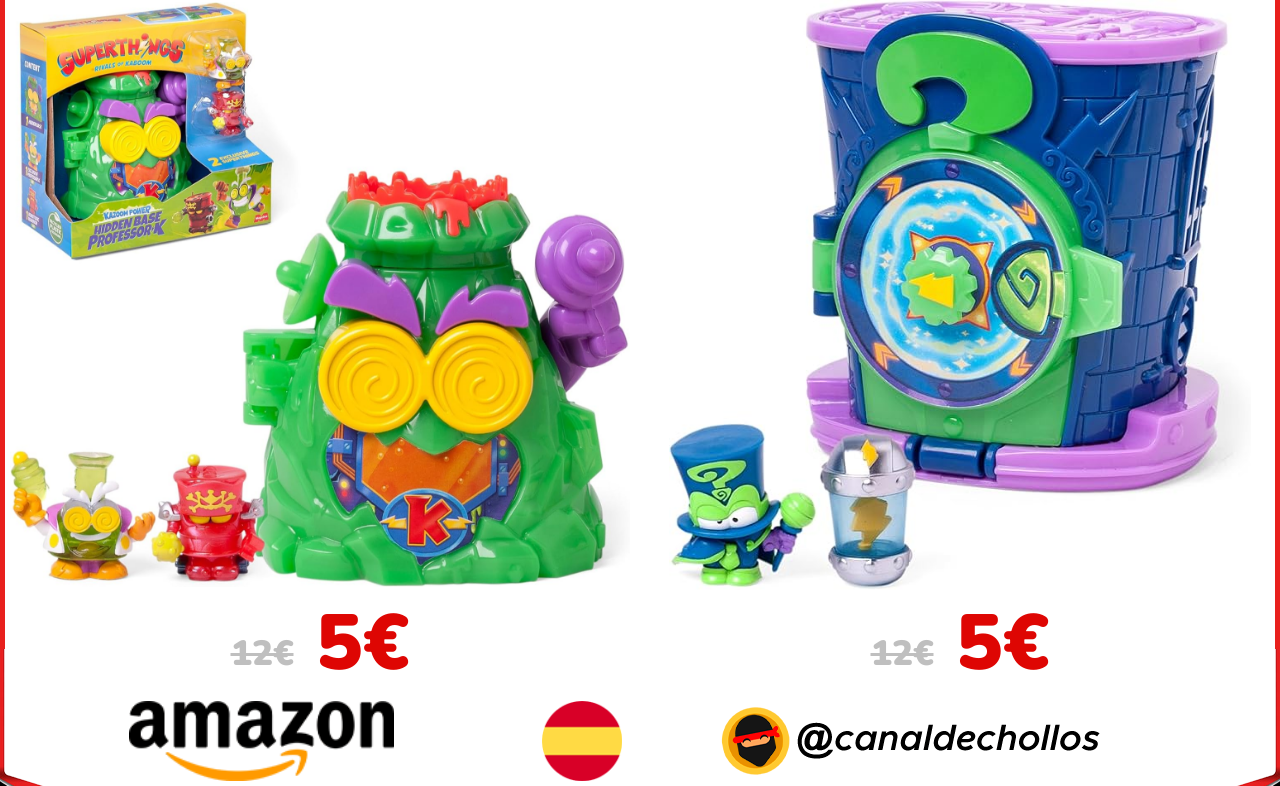 ✨ Precio chollo para la base secreta Superthings Kazoom Power Hidden Base Professor K. Incluye un volcán con laboratorio y trampas. Cuenta con un brazo lanzador para atacar con Robotoxic. Ideal para recrear escenas de la serie Kazoom Power, con diseño detallado y múltiples funciones para aventuras dinámicas y creativas en Kaboom City. Vendido y enviado por Amazon.