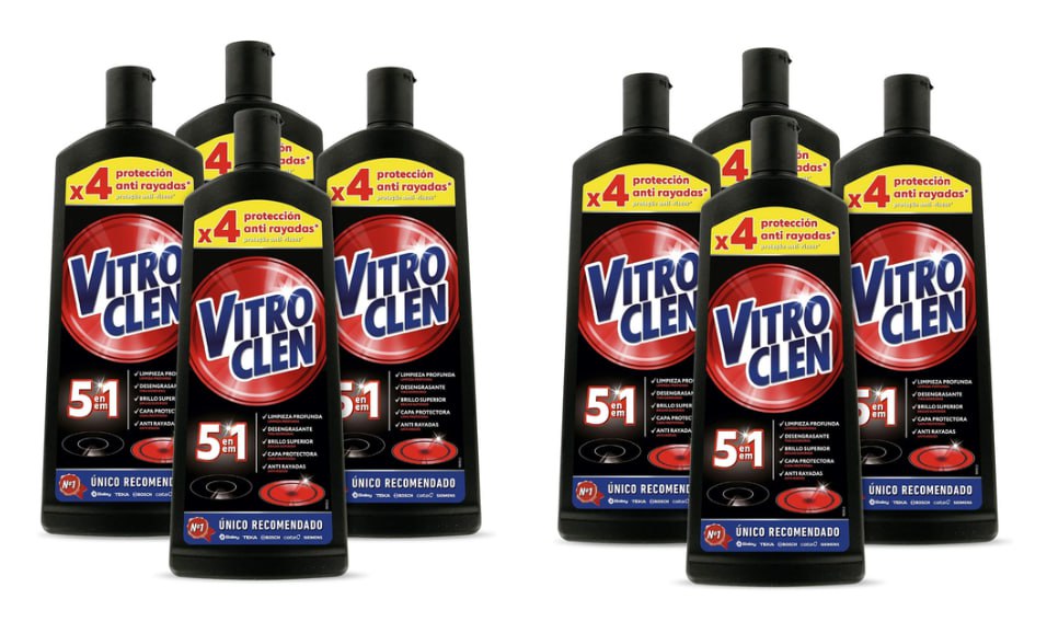 ✨ Chollo para este pack de limpieza de vitrocerámica de la marca Vitroclen. Esta compuesto por 8 botes de 450ml. Con una gran potencia para limpiar y cuidar tu vitrocerámica manteniéndola brillante como el primer día, aplicando protección sobre la placa. Elimina la grasa fácilmente gracias a su fórmula.