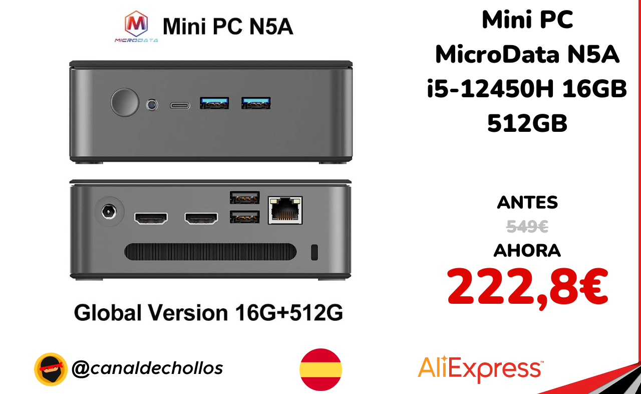 🔹 Mini PC MicroData N5A i5-12450H 16GB 512GB solo 222,8€ ❗️💥 (PVP: 549€)