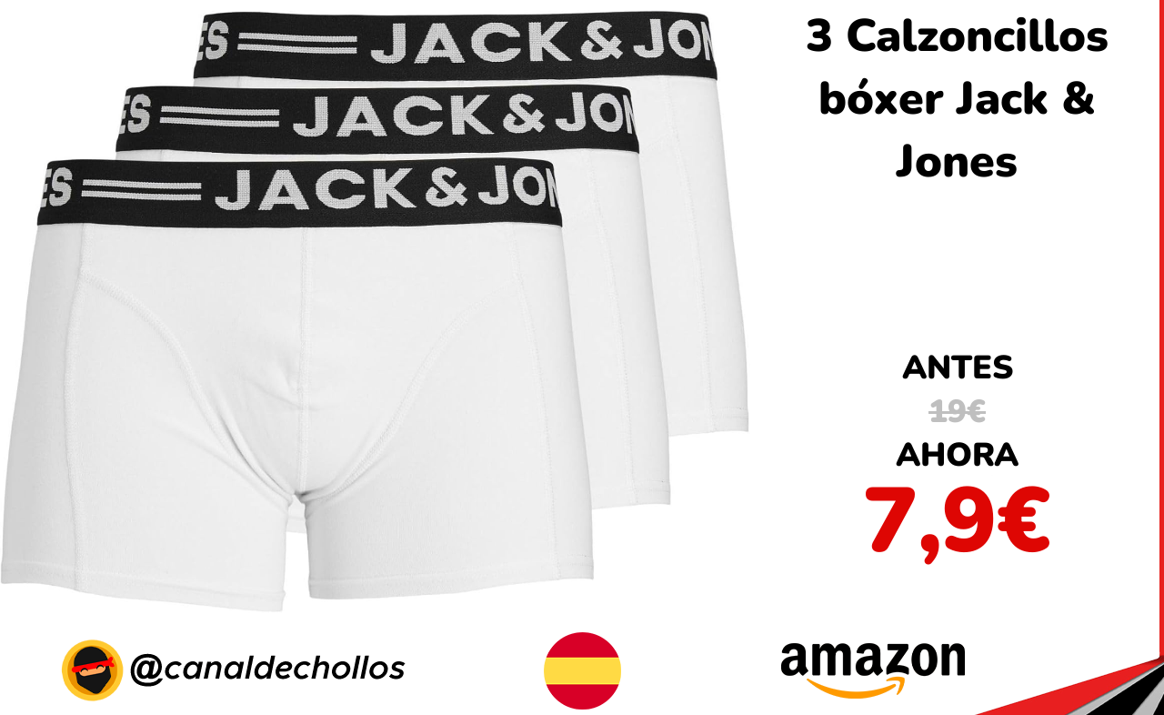 🔹 3 Calzoncillos bóxer Jack & Jones solo 7,9€ ❗️💥 (PVP: 19€)