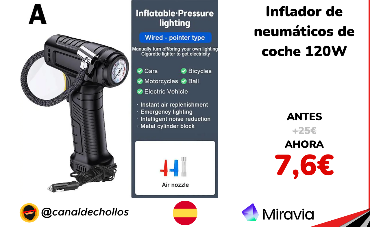 🔹 Inflador de neumáticos de coche 120W solo 7,6€ ❗️💥 (PVP: +25€)