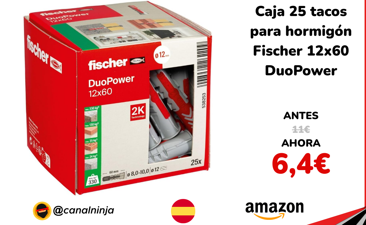 🔹 Caja 25 tacos para hormigón Fischer 12x60 DuoPower solo 6,4€ ❗️⚔️️ (PVP: 11€)