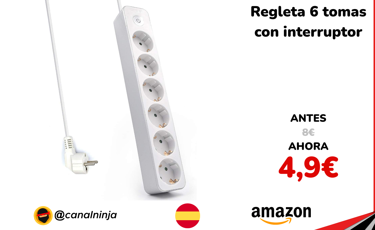 🔹 Regleta 6 tomas con interruptor solo 4,9€ ❗️⚔️️ (PVP: 8€)