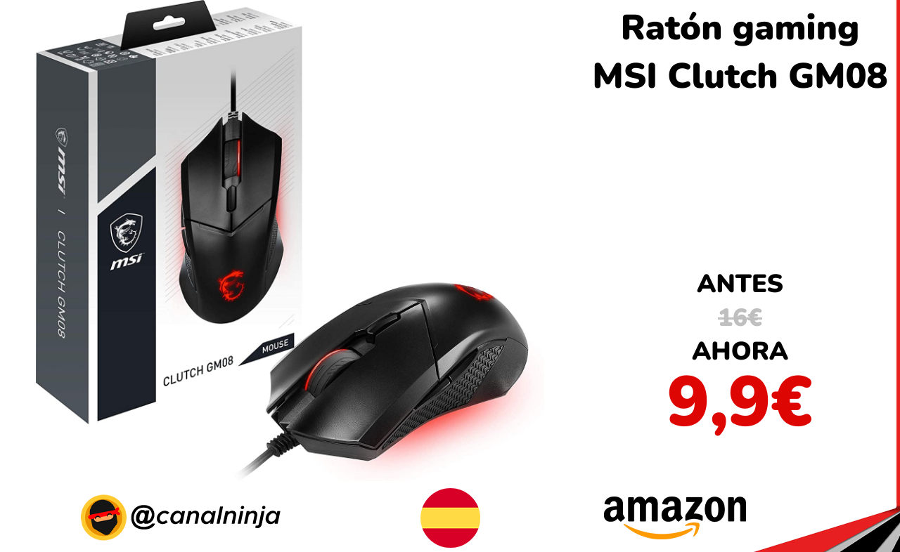 🔹 Ratón gaming MSI Clutch GM08 solo 9,9€ ❗️⚔️️ (PVP: 16€)