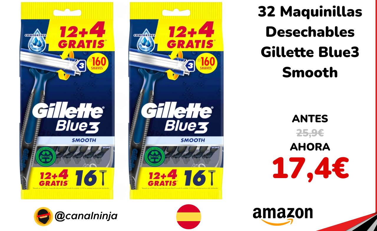 🔹 32 Maquinillas Desechables Gillette Blue3 Smooth solo 17,4€ ❗️⚔️️ (PVP: 25,9€)