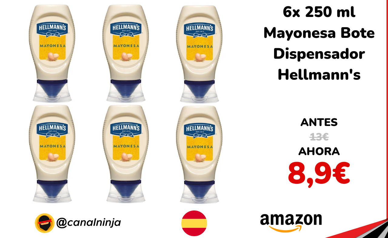 🔹 6x 250 ml Mayonesa Bote Dispensador Hellmann's solo 8,9€ ❗️⚔️️ (PVP: 13€)