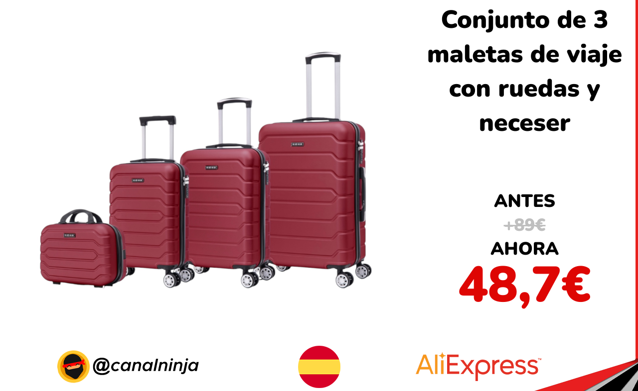 🔹 Conjunto de 3 maletas de viaje con ruedas y neceser solo 48,7€ ❗️⚔️️ (PVP: +89€)