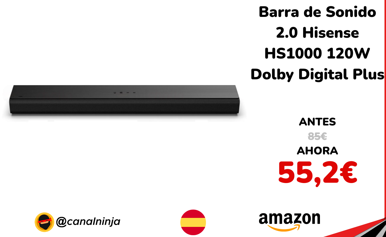 🔹 Barra de Sonido 2.0 Hisense HS1000 120W Dolby Digital Plus solo 55,2€ ❗️⚔️️ (PVP: 85€)