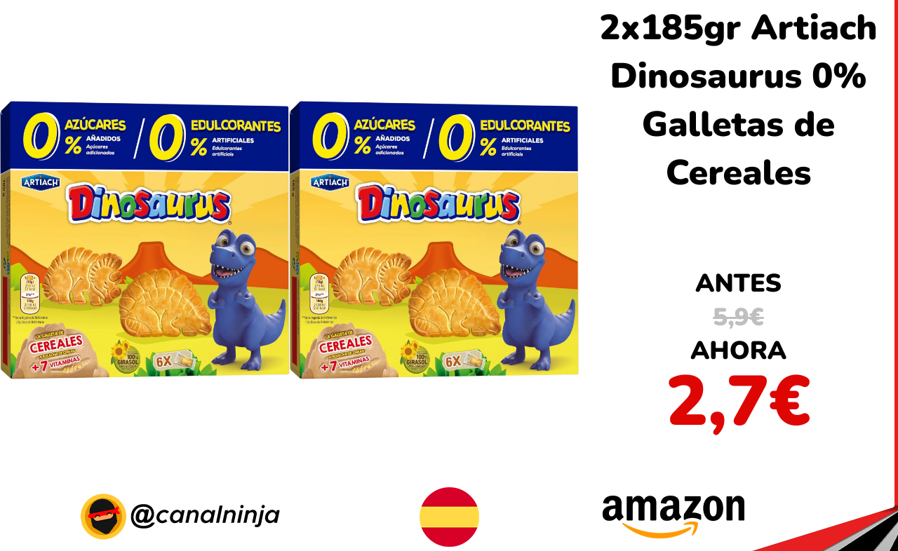 🔹 2x185gr Artiach Dinosaurus 0% Galletas de Cereales solo 2,7€ ❗️⚔️️ (PVP: 5,9€)