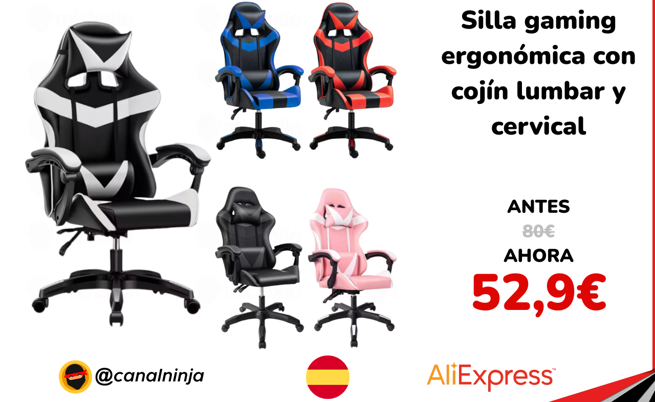 🔹 Silla gaming ergonómica con cojín lumbar y cervical solo 52,9€ ❗️⚔️️ (PVP: 80€)