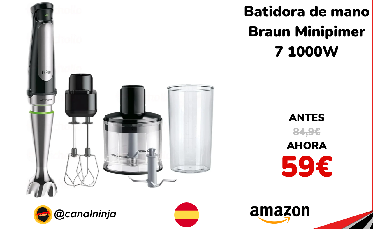 🔹 Batidora de mano Braun Minipimer 7 1000W solo 59€ ❗️⚔️️ (PVP: 84,9€)