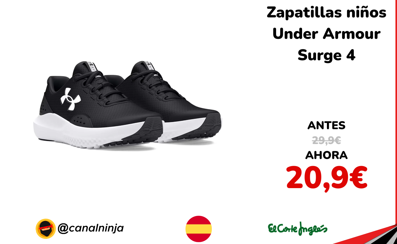 🔹 Zapatillas niños Under Armour Surge 4 solo 20,9€ ❗️⚔️️ (PVP: 29,9€)