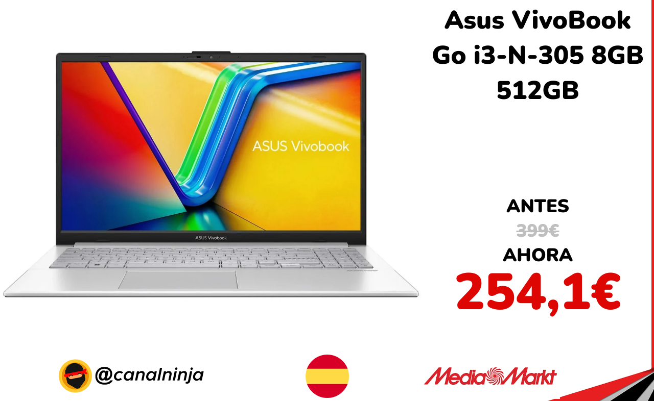 🔹 Asus VivoBook Go i3-N-305 8GB 512GB solo 254,1€ ❗️⚔️️ (PVP: 399€)