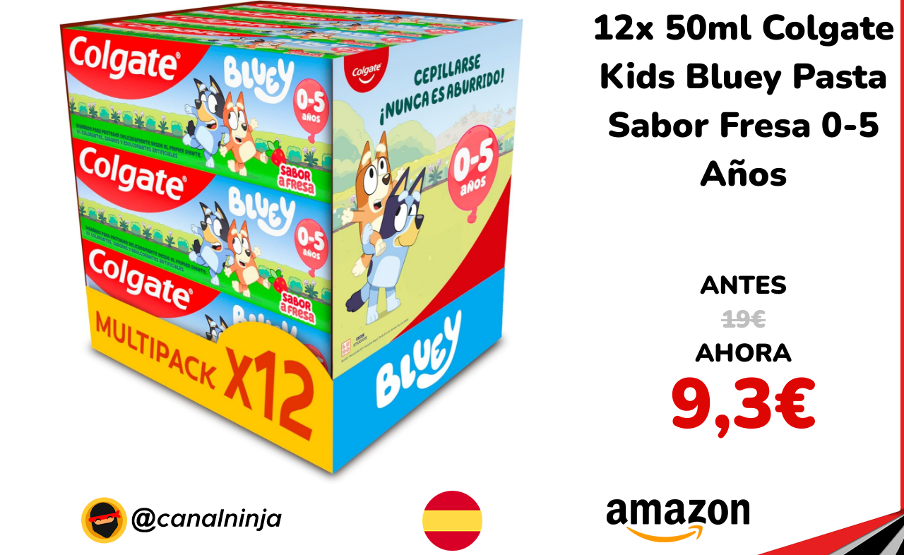 🔹 12x 50ml Colgate Kids Bluey Pasta Sabor Fresa 0-5 Años solo 9,3€ ❗️⚔️️ (PVP: 19€)
