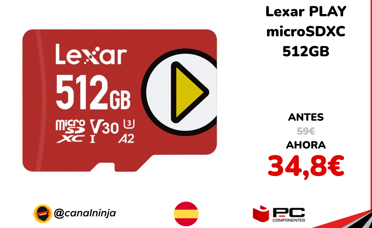 🔹 Lexar PLAY microSDXC 512GB solo 34,8€ ❗️⚔️️ (PVP: 59€)