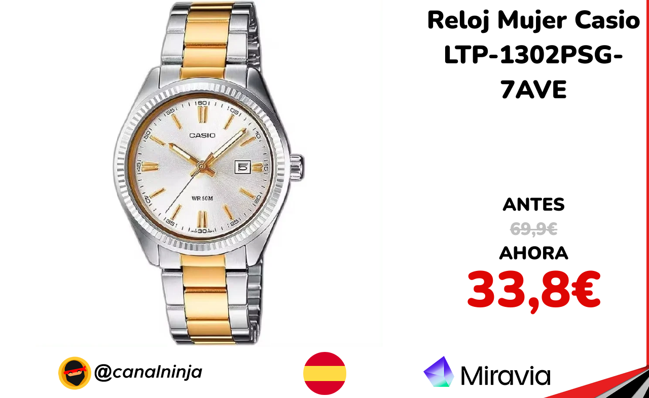 🔹 Reloj Mujer Casio LTP-1302PSG-7AVE solo 33,8€ ❗️⚔️️ (PVP: 69,9€)