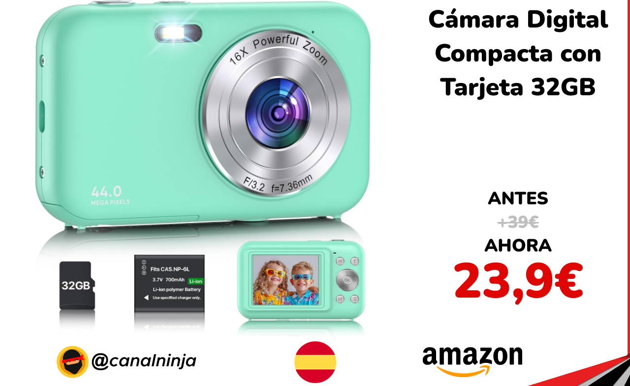 🔹 Cámara Digital Compacta con Tarjeta 32GB solo 23,9€ ❗️⚔️️ (PVP: +39€)