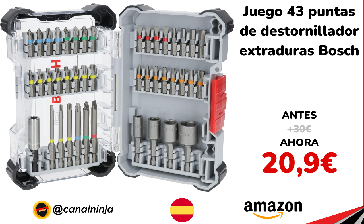 🔹 Juego 43 puntas de destornillador extraduras Bosch solo 20,9€ ❗️⚔️️ (PVP: +30€)