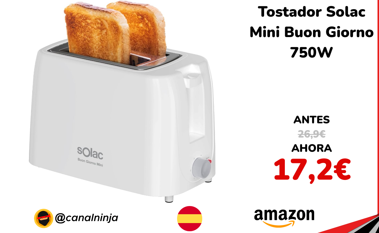 🔹 Tostador Solac Mini Buon Giorno 750W solo 17,2€ ❗️⚔️️ (PVP: 26,9€)