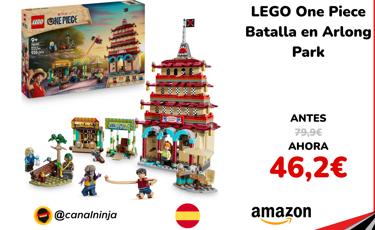 ✨ Muy buen descuento para este set LEGO One Piece Batalla en Arlong Park con 926 piezas. Recrea la épica batalla de la Banda del Sombrero de Paja con pagoda que se derrumba, accesorios interactivos y juego trepidante. Incluye minifiguras de Luffy, Nami, Usopp, Arlong y Chu.