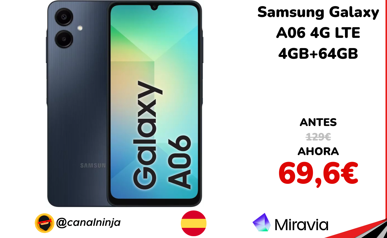 🔹 Samsung Galaxy A06 4G LTE 4GB+64GB solo 69,6€ ❗️⚔️️ (PVP: 129€)