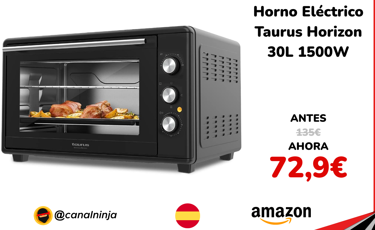 🔹 Horno Eléctrico Taurus Horizon 30L 1500W solo 72,9€ ❗️⚔️️ (PVP: 135€)