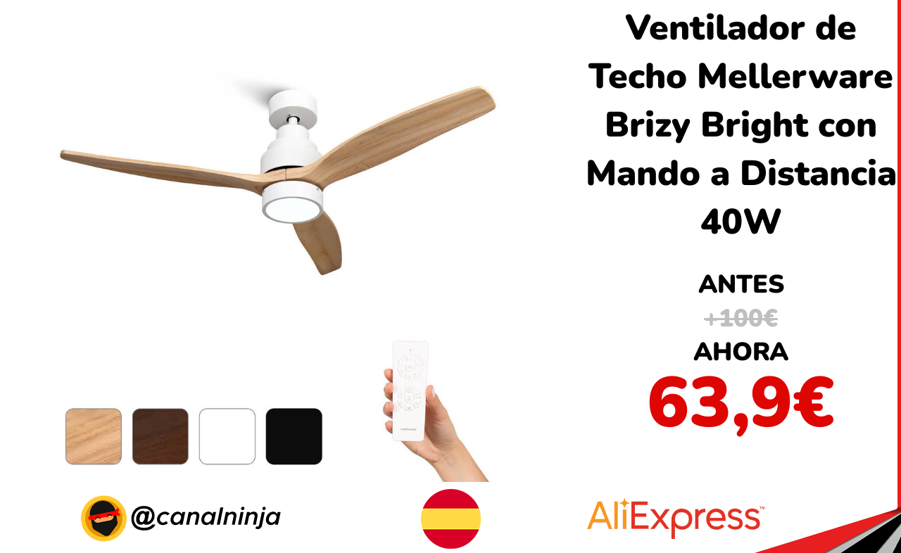 🔹 Ventilador de Techo Mellerware Brizy Bright con Mando a Distancia 40W solo 63,9€ ❗️⚔️️ (PVP: +100€)
