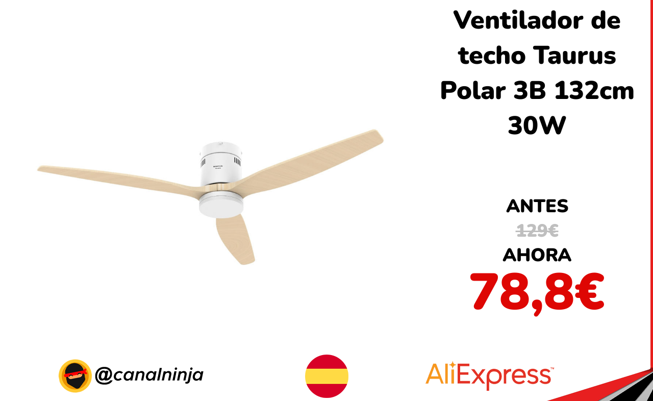 🔹 Ventilador de techo Taurus Polar 3B 132cm 30W solo 78,8€ ❗️⚔️️ (PVP: 129€)