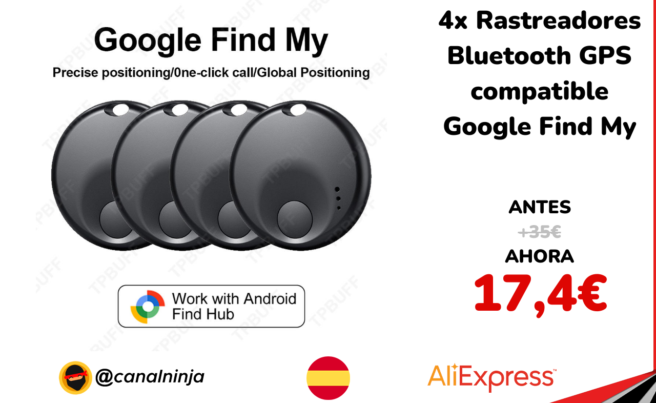 🔹 4x Rastreadores Bluetooth GPS compatible Google Find My solo 17,4€ ❗️⚔️️ (PVP: +35€)