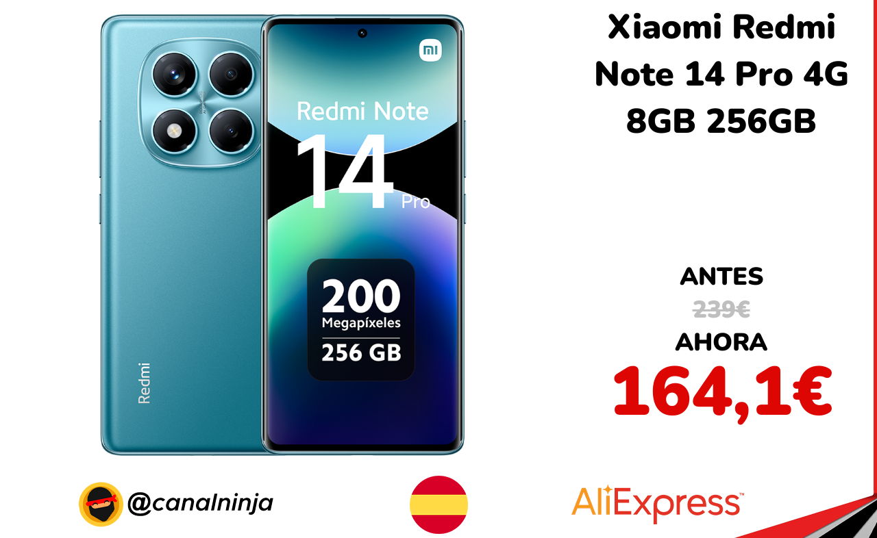 🔹 Xiaomi Redmi Note 14 Pro 4G 8GB 256GB solo 164,1€ ❗️⚔️️ (PVP: 239€)