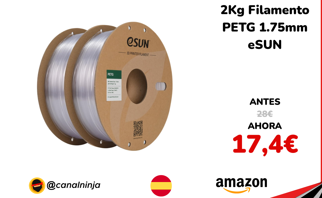 🔹 2Kg Filamento PETG 1.75mm eSUN solo 17,4€ ❗️⚔️️ (PVP: 28€)