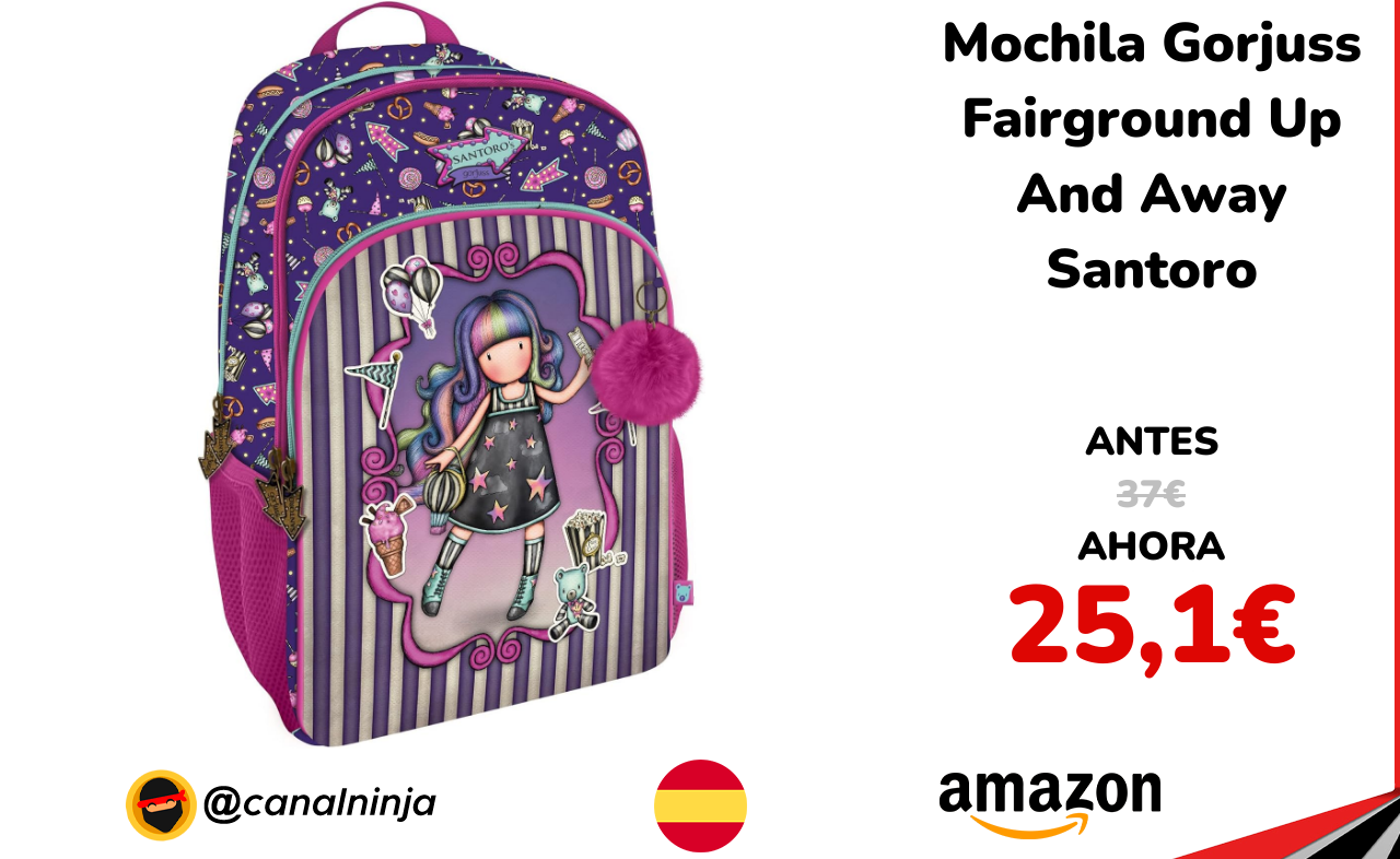 ✨ Buen precio en esta mochila Santoro Gorjuss Fairground Up And Away con tres compartimentos independientes y medidas de 29x45x17cm. Está diseñada con materiales resistentes y cuenta con espacio amplio para organizar libros y objetos. Incluye asas acolchadas y espalda ergonómica para mayor comodidad. Ideal para uso diario y escolar. Vendido y enviado por Amazon.