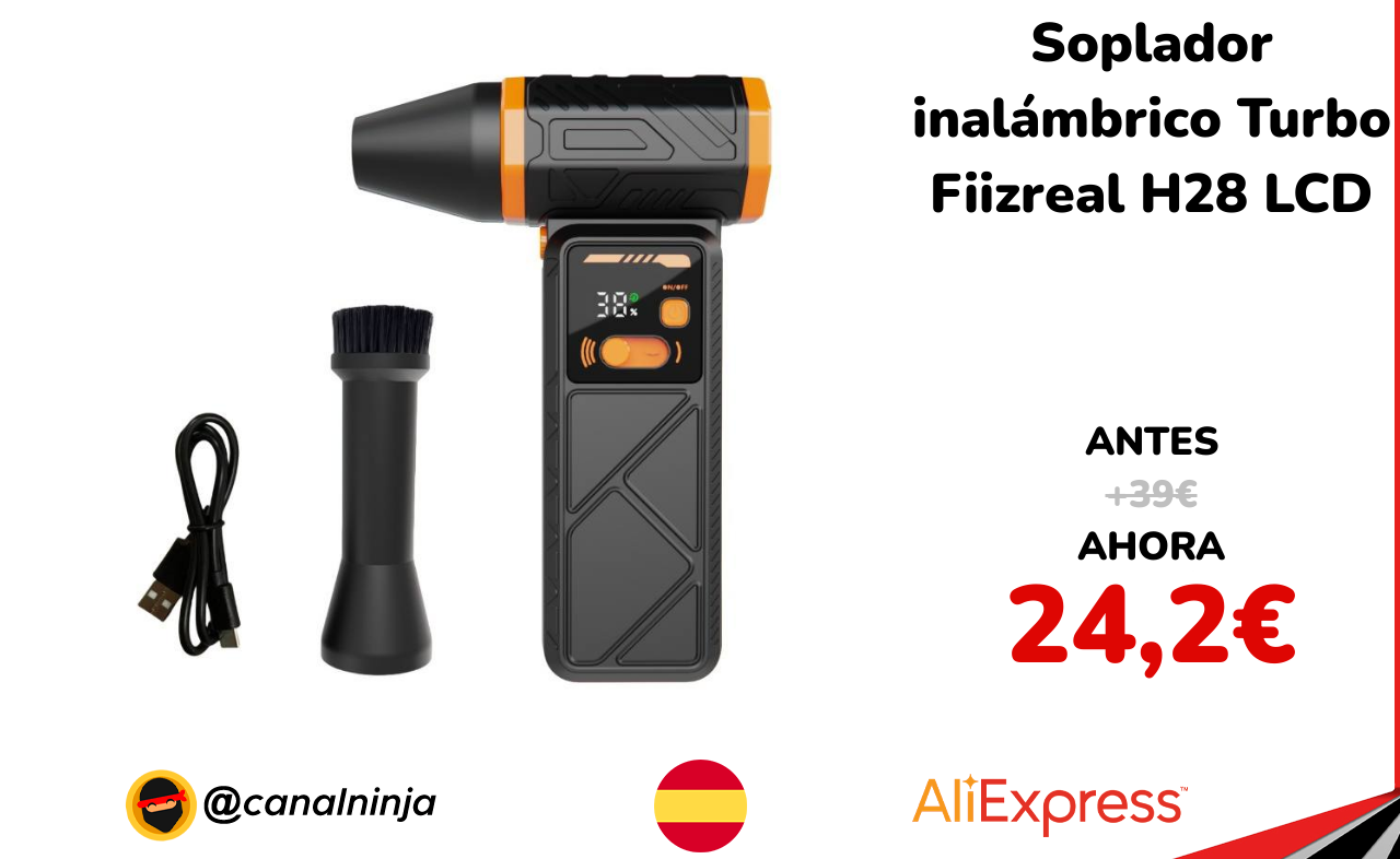 🔹 Soplador inalámbrico Turbo Fiizreal H28 LCD solo 24,2€ ❗️⚔️️ (PVP: +39€)