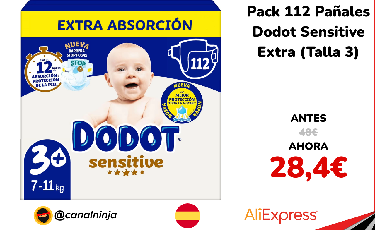 🔹 Pack 112 Pañales Dodot Sensitive Extra (Talla 3) solo 28,4€ ❗️⚔️️ (PVP: 48€)