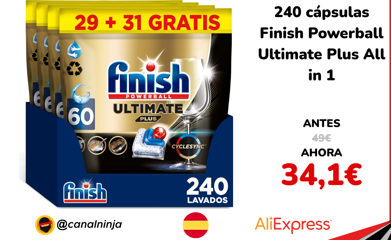 🔹 240 cápsulas Finish Powerball Ultimate Plus All in 1 solo 34,1€ ❗️⚔️️ (PVP: 49€)