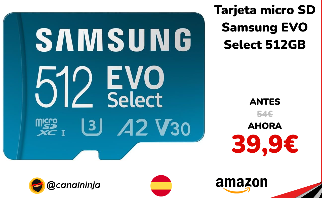 🔹 Tarjeta micro SD Samsung EVO Select 512GB solo 39,9€ ❗️⚔️️ (PVP: 54€)