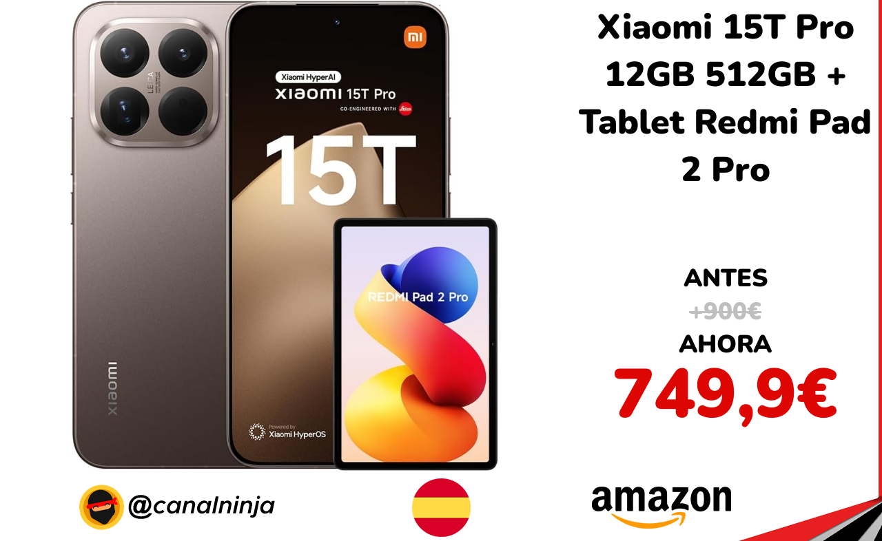 🔹 Xiaomi 15T Pro 12GB 512GB + Tablet Redmi Pad 2 Pro solo 749,9€ ❗️⚔️️ (PVP: +900€)