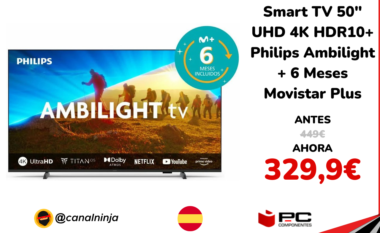 🔹 Smart TV 50" UHD 4K HDR10+ Philips Ambilight + 6 Meses Movistar Plus solo 329,9€ ❗️⚔️️ (PVP: 449€)