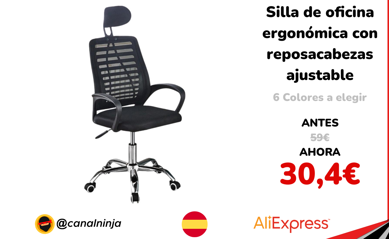 🔹 Silla de oficina ergonómica con reposacabezas ajustable solo 30,4€ ❗️⚔️️ (PVP: 59€)