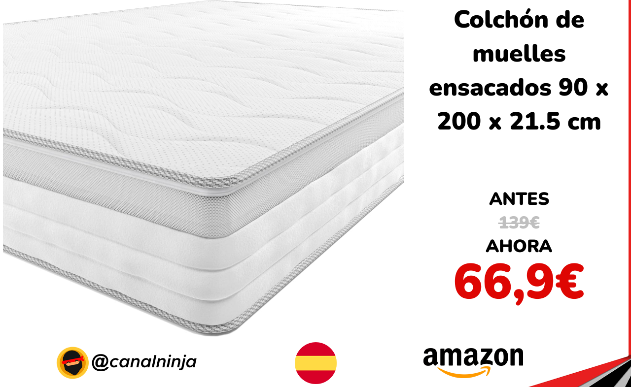 🔹 Colchón de muelles ensacados 90 x 200 x 21.5 cm solo 66,9€ ❗️⚔️️ (PVP: 139€)