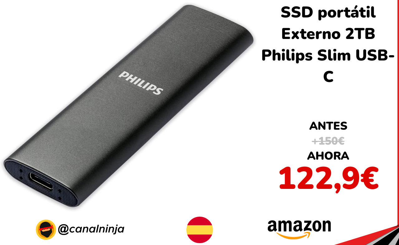 🔹 SSD portátil Externo 2TB Philips Slim USB-C solo 122,9€ ❗️⚔️️ (PVP: +150€)