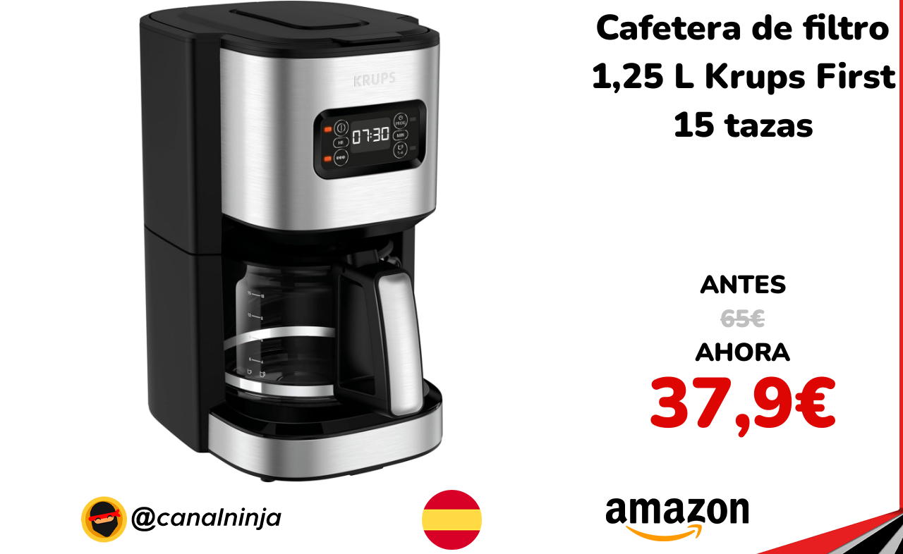 🔹 Cafetera de filtro 1,25 L Krups First 15 tazas solo 37,9€ ❗️⚔️️ (PVP: 65€)