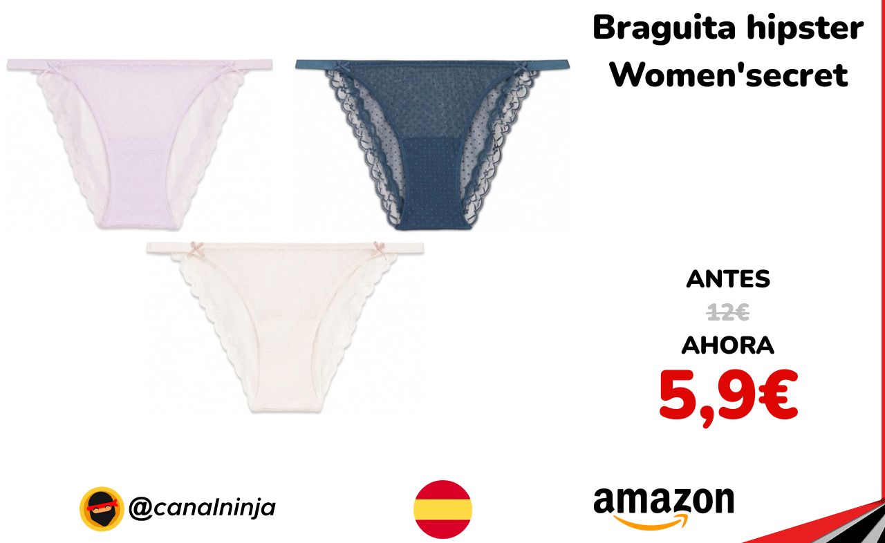 ✨ Buen precio para esta braga hipster de la colección Helankas Autumn de Women'secret, con diseño de tira lateral, plumeti y lazos decorativos. Fabricada para ofrecer comodidad y estilo con detalles elegantes, ideal para el fondo de armario de cualquier mujer. Múltiples tallas a elegir. Vendido y enviado por Amazon.