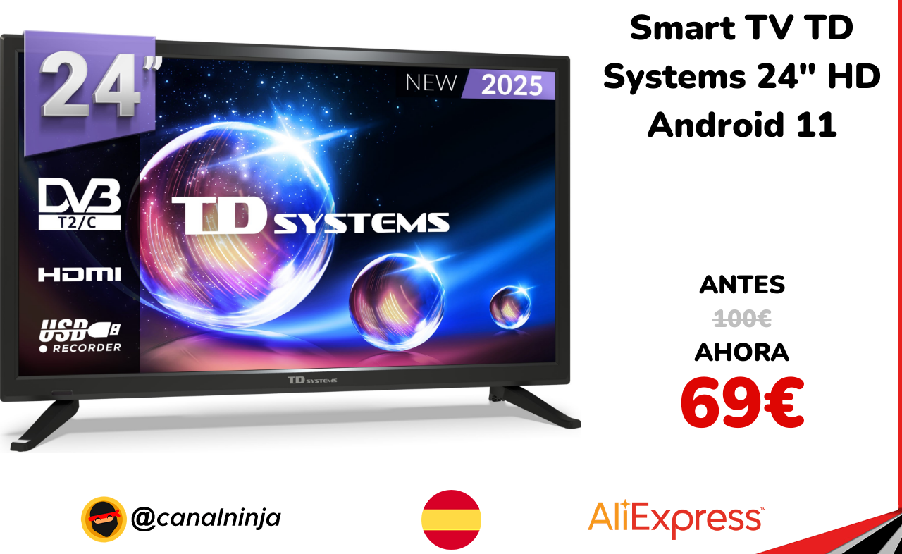 🔹 Smart TV TD Systems 24" HD Android 11 solo 69€ ❗️⚔️️ (PVP: 100€)