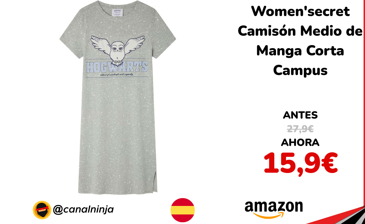 🔹 Women'secret Camisón Medio de Manga Corta Campus solo 15,9€ ❗️⚔️️ (PVP: 27,9€)