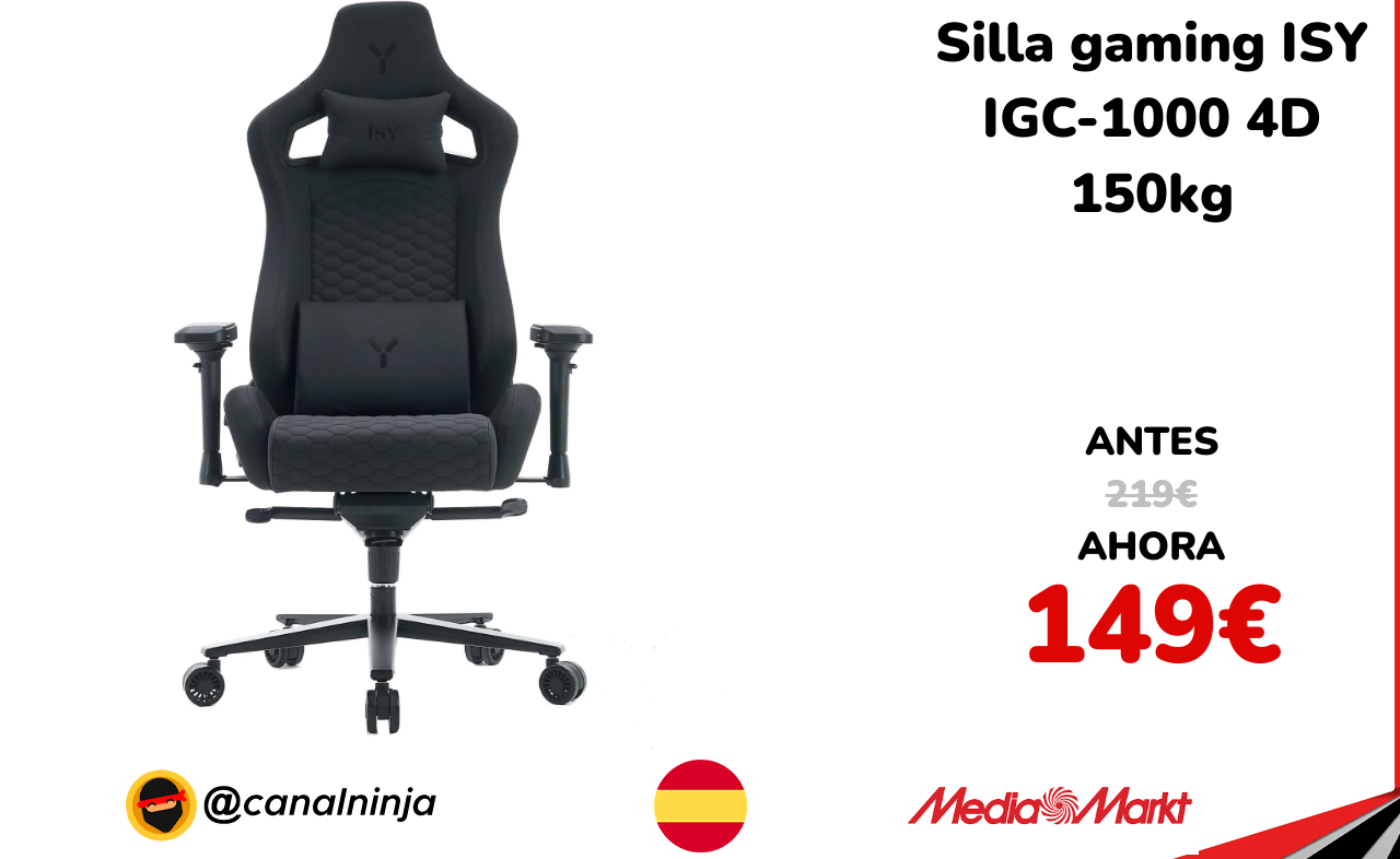 🔹 Silla gaming ISY IGC-1000 4D 150kg solo 149€ ❗️⚔️️ (PVP: 219€)