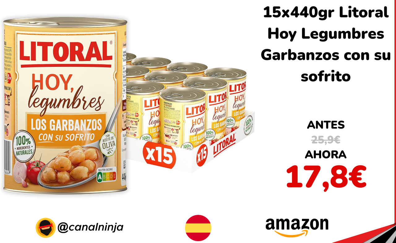 🔹 15x440gr Litoral Hoy Legumbres Garbanzos con su sofrito solo 17,8€ ❗️⚔️️ (PVP: 25,9€)